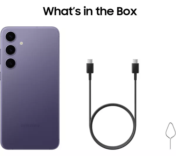 You get the Galaxy S24+, USB-C cable, ejector pin, quick-start guide, and warranty card. A 2-year manufacturer’s warranty is also included.