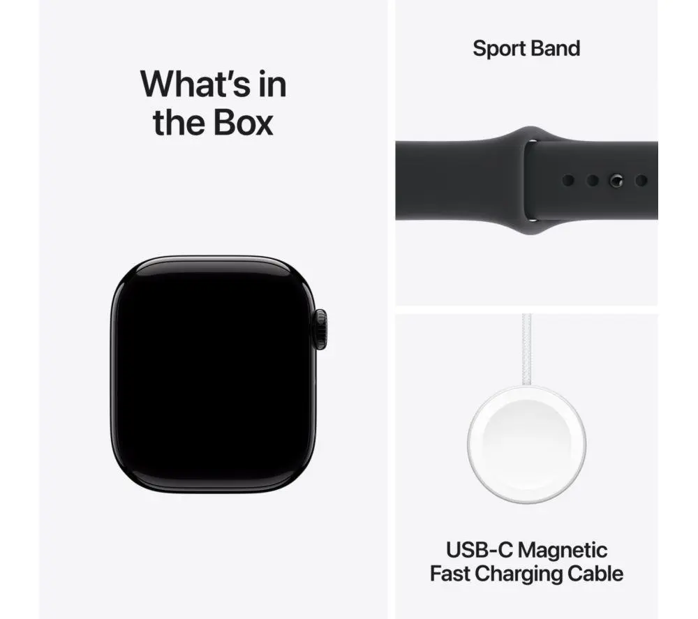 - Strap Material: Soft fluoroelastomer strap in classic Jet Black.
